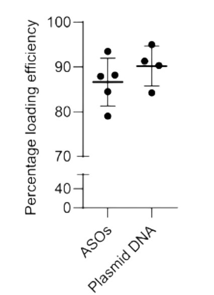 EVfect demonstrated high loading efficiencies for both ASOs and plasmid DNA.